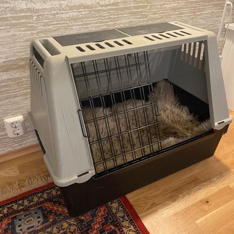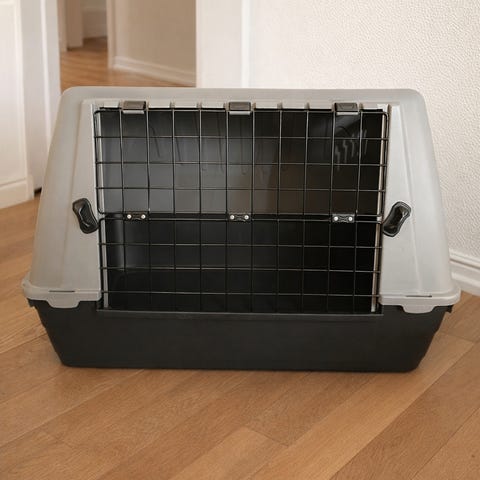Ferplast Atlas Car biltransportbur laget av plast og metall. Burens farge er grå, og den har en metallgitterdør. Designet for sikker transport av hunder i bil, med praktisk håndtak og ventilasjonsåpninger. Døren kan kun åpnes fra utsiden for økt sikkerhet. Maksimal vektkapasitet er 10 kg.