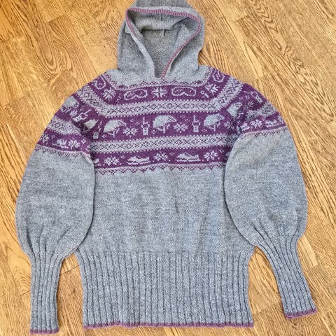 Strikket i originalgarnet Álafosslopi som er ull fra Island, noe vannavvisende.