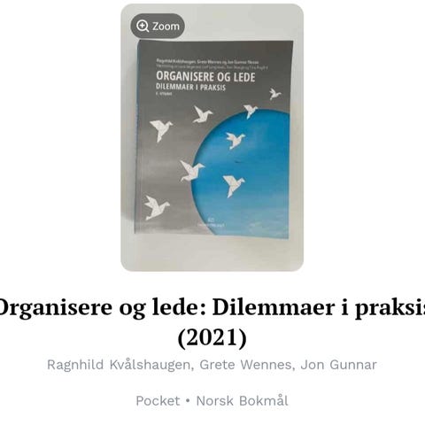 Mer info her: https://fagbokforlaget.no/produkt/9788245031904-organisere-og-lede