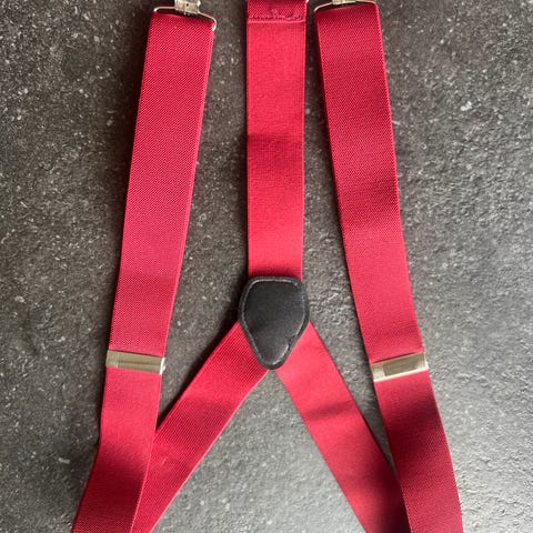 Bukseseler i mørkerød farge. Elastisk og sterk materiale.