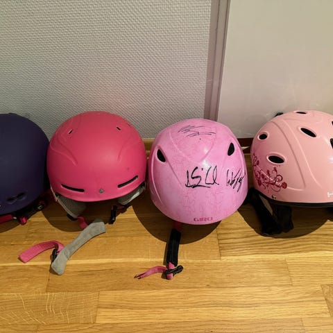 Noen skrammer på hjelmen, men den har ikke fått seg noen harde slag og har masse fin bruk igjen.