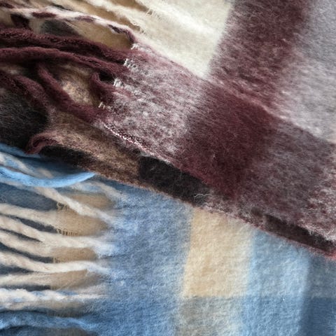 Skjerf i hvit, grå og sort,ubrukt med lappen på