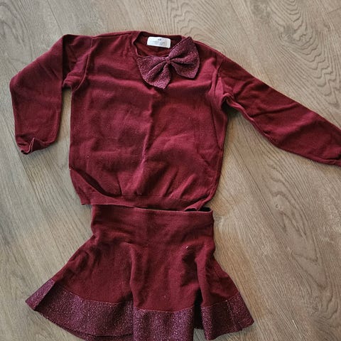 2 fine tyllskjørt med glitterdetaljer. Pen rosa pelsvest og hvit pyntejakke.