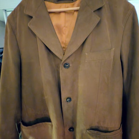 Kul herre jakke fra Bugatti. Den er lite brukt og foret over hele innvendig. Den har knapper og glidelås og gode lommer. Den minner om semsket skinn utvendig men er ikke det. Se bilde av innholdsfortegnelsen.