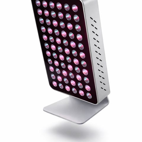 Fire bølgelengder. Den kunne hatt to bølgelengder til, men to rød-lys og to infrarød-lys får mitokondriene til å jobbe godt så cellene får energi-overskudd. Når kroppen har mer ATP - kroppens energi-molekyl - så kan kroppen lettere tilhele seg selv.