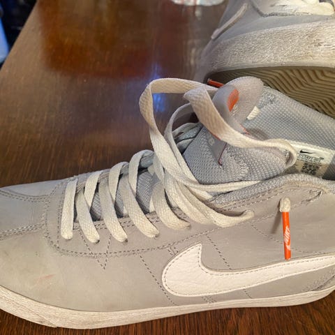 Selger et par originale Nike Air Jordan sneakers i størrelse 41. Klassisk high-top design i svart, grå og røde detaljer. Perfekt til streetwear, basketball eller som en trendy sneaker til hverdags. Komfortable og stilige med ikonisk Air Jordan-logo.
