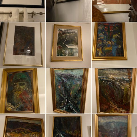 Ett maleri som setter fokus på naturødeleggelsene vindmøllene forårsaker. Kjøp dette bilde for å vise støtte mot kampen for vindmøller. Hbo. 500kr