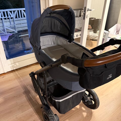 Selger en fun fin barnevogn med liggedelen. Vi har vært fornøyd med den så lenge og ønsker at noen andre få nytte av den videre. Funker som den skal.