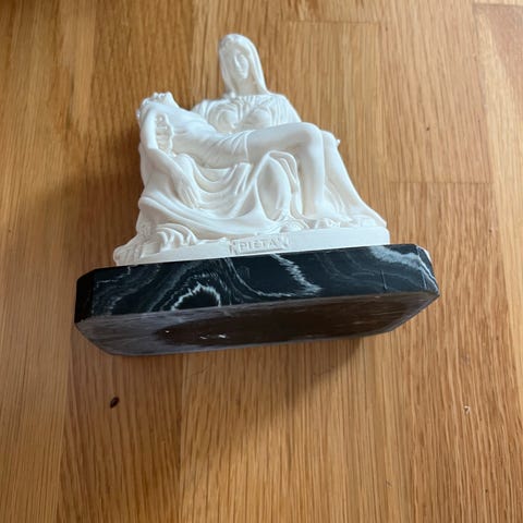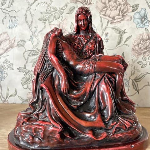 Skulptur. ‘Pieta’ av Michelangelo. Jomfru Maria med Jesus. Se bilder.