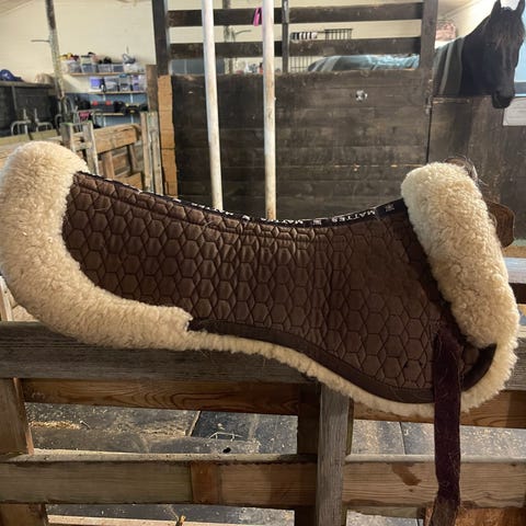 Noe slitt på oversiden foran, men ikke ned mot hesten. Se bilde.