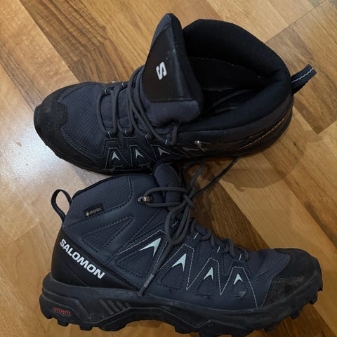 Salomon fottursko i størrelse 39, svart farge. Egnet for fjelltur, laget med materialer som gir støtte og komfort under aktivitet.