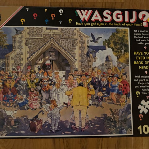 Wasgij Mystery Puzzle puslespill med 1000 biter. Puslespillet har et mysterie-tema som utfordrer spilleren til å se og løse gåten. Egnet for voksne og eldre barn som liker puslespill med høy vanskelighetsgrad.