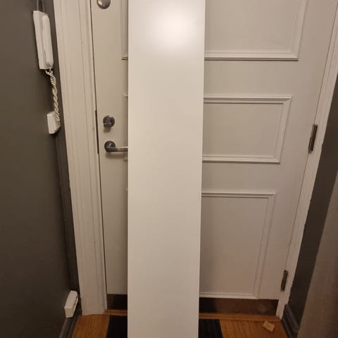 Skap kan henges på vegg eller stå på gulvet som nattbord men en hylle, veldig praktisk.