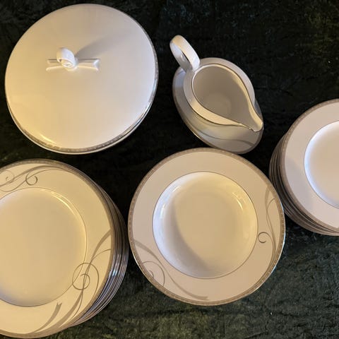Serviset fremstår som nytt da kun 6 av middagstallerken er blitt brukt en gang.