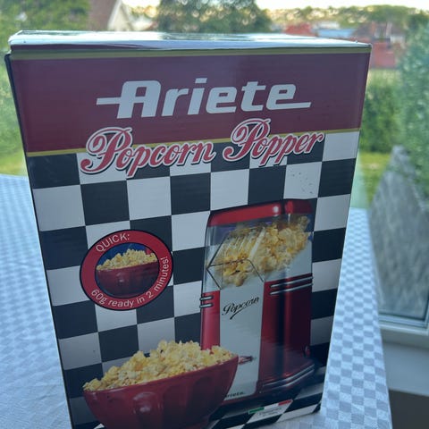 Emerio Popcornmaskin i rød farge. Maskinen er helt ny i esken
