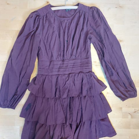 Fin innsving i midjen. Sitter pent på. Innerkjole. Splitt bak
