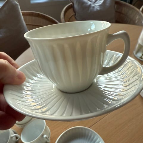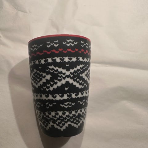 Flott kopp uten hank med Mariusmønster. Koppen er designet av Pernille Vea for Menu. Høyde ca 10,5cm og diameter ca 7,5cm.