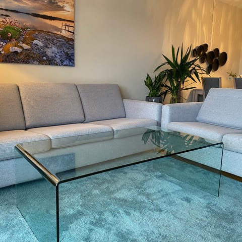 Dyp sitteplass med lav ryggstøtte som gir optimal støtte og komfort
