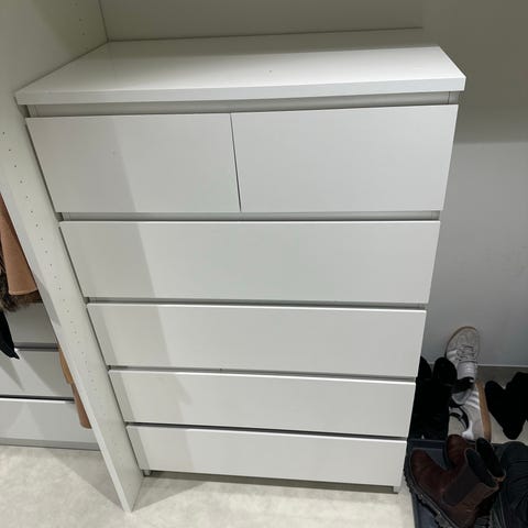 MALM Kommode fra IKEA, 6 skuffer, hvit/speil, 40x123 cm