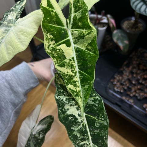 Fin knoll fra Alocasia Ninja albo variegata selges.