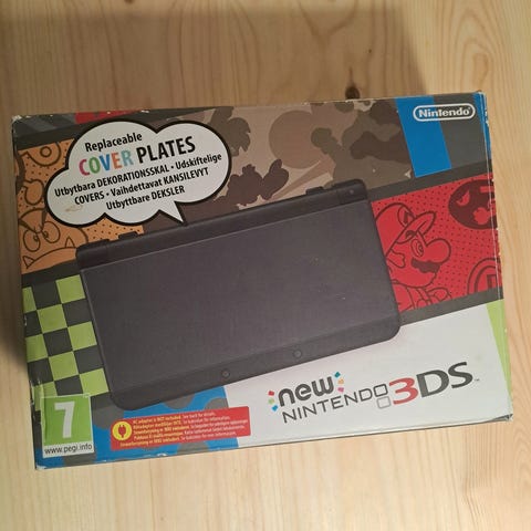 Nintendo 3DS spillkonsoll i svart farge. Inkluderer flere spill og lader. Selges som en pakke