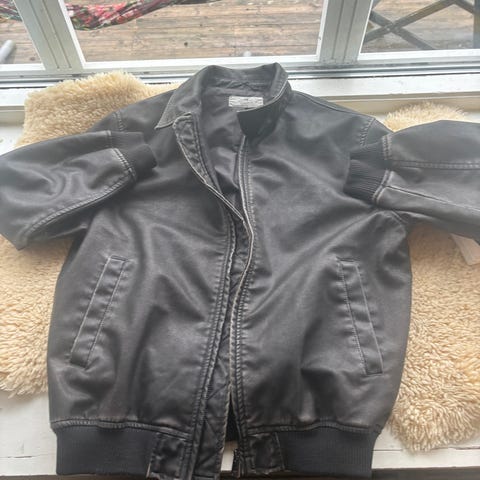 H&M Grå hettejakke i bomull for gutt, størrelse 152. Jakken har glidelås foran og er laget av 60% bomull og 40% polyester. Den har fleecefôr for ekstra varme og komfort.