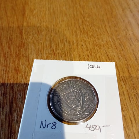 5 øre, 1957, Kong Haakon VII, norsk mynt, gamle mynter, samlermynt, kobbermynt, sirkulert mynt, Norge, myntsamling, etterkrigstid