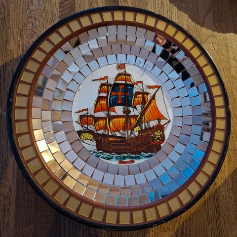 Søkeord keramikk veggtallerken veggfat håndlaget hånddreid terrakotta seilbåt båter maritim sjø kyst blå gul hvit retro vintage kjøkken stue pynt veggpynt skål tallerken dekor nordisk mediterran bohem landlig stil samler gaver 22cm