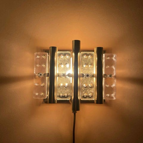 To utrolig flotte vintage vegglamper i glass og messing. Orrefors 60/70-tallet.
