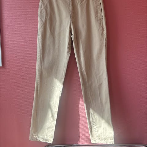 Vide, cropped chinos-inspirerte bukser i mørk kastanjebrun resirkulert ull. Selges fordi de er for små, og er nesten aldri brukt.