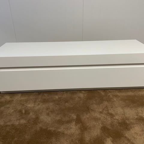 Civitas tv-benk 119cm (høyde 19cm) med ben 28cm. Sort ask finér med nedfellbar front i sort hi-fi tekstil.
