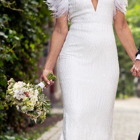 Litt om meg, 171 cm høy, 60-62 kg, 49 år. På bryllupsdagen vi jeg si at jeg var en Str 36/38. Er en dame som går inn i både 36-38. Men denne kjolen passer til flere størrelser og har lette tilpasnings muligheter. Min plan var å skifte til heler etter vielsen, men endte med å kun gå i ballerina sko til jeg la meg( også komfortabelt).