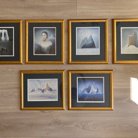 Selger fire bilder av Vebjørn Sand. Rammen er 16,5 x 14cm. Verkene er: