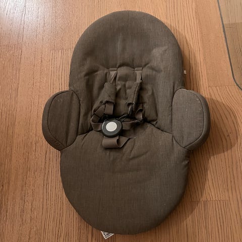 Stokke newborn set, i god stand. Passer fra nyfødt fasen og har en myk, grå farge. Designet for komfort og sikkerhet under bruk.