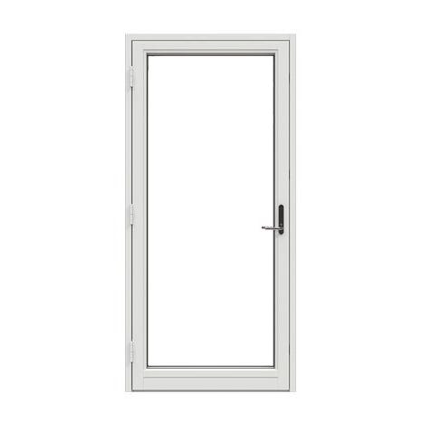 Ny NorDan balkongdør. Alubeslått sort utvendig og standard hvit innvendig, 80x210 høyre hengslet, med låsesylynder og nøkler. Pene detaljer på sprosser.