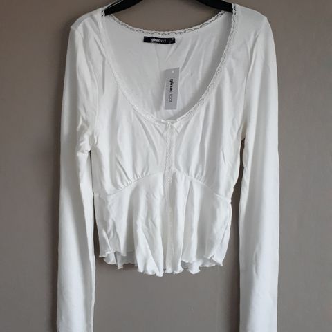 Ny creamfarget topp med paljetter fra Gina Tricot i størrelse S.