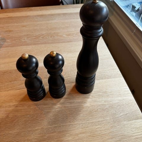 Kvernen måler 10 cm og har en kraftig stålkvern utviklet for pepperkorn. Vi liker den veldig godt men vi har to.