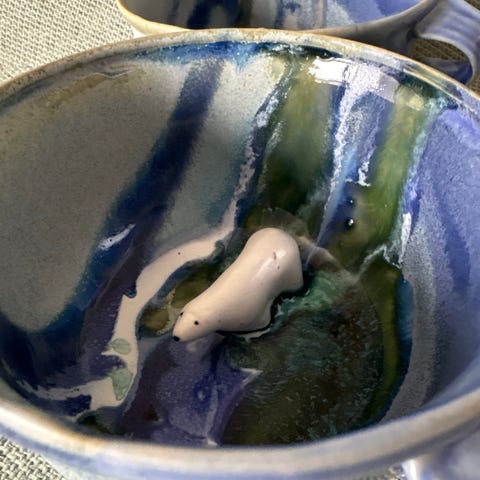 Et sett med kjeramikk kopper med troll!