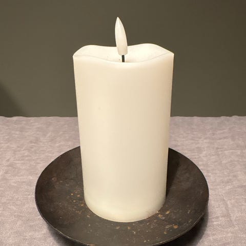 Selger en flott, eldre ca 54 cm høy lysestake til kubbelys.