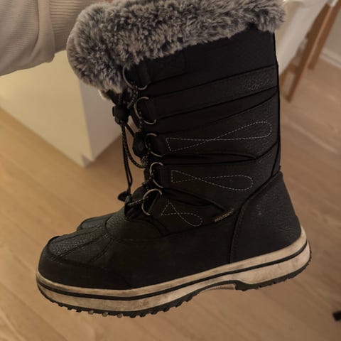 Varm vinter barnesko for jente i størrelse 37. Skoene er røde og designet for barn.