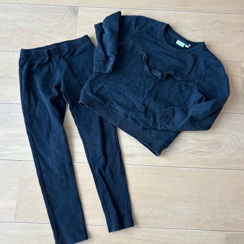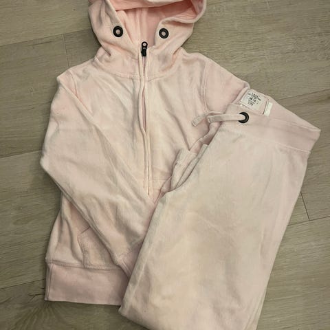 Søt jakke med ører og glidelås og lyserosa joggebukse med stramming i livet.