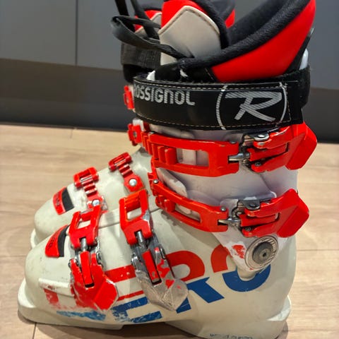 Disse er brukt kun 1 gang, og bortsett fra en ripe foran første spenne på høyre sko, fremstår de som nye.