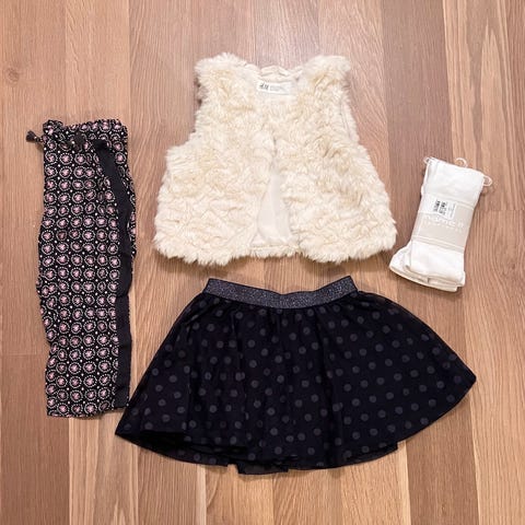 Som en bonus følger en grå genser med sommerfugl og et skjørt med (se bilder).😊