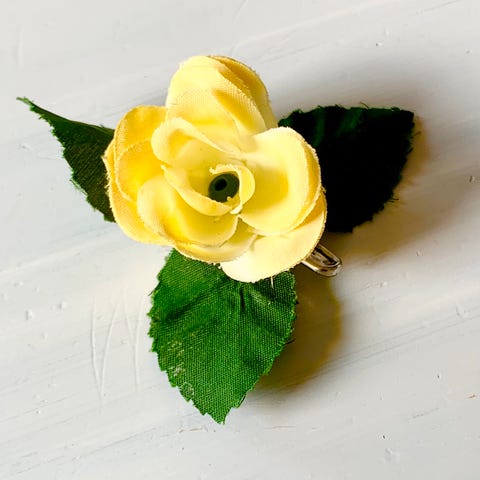 maiblomst, mai blomst, vintage smykke, vintage brosje, gul brosje, retro smykke, nål, jakkesmykke