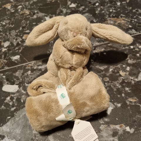 Hvit Moonie kanin - Kjøpt ny desember 2023 og brukt noen mnd til babyen. Kun ligget ved siden av baby, baby har ikke kost med den/siklet på den. Lader medfølger ikke da den forsvant i flyttelass. Men er en vanlig usb-c inngang. Selges for 500,- (nypris 869,- på Sprell)
