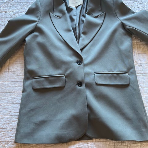 Aldri brukt! Nydelig Flaskegrønn blazer som passer til både hverdag og fest. Løs’ litt lang modell