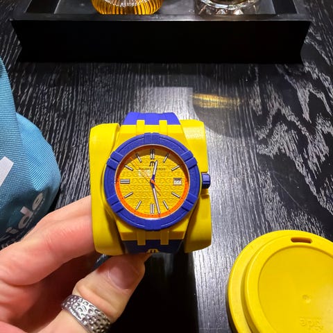 Blå og rosa farger.