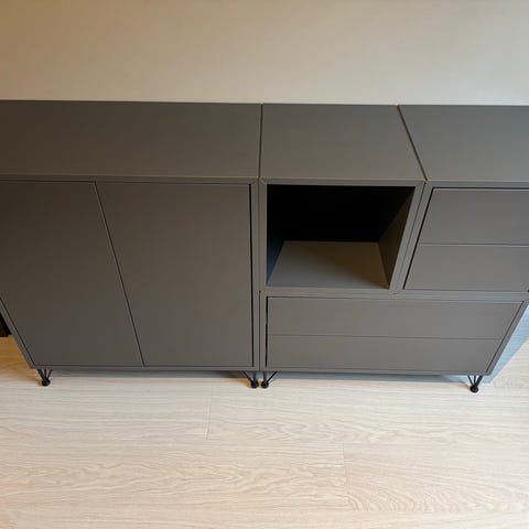 Kommode i sittehøyde. Passer bra i inngangsparti, benk til spisebord med oppbevaring eller på soverommet. Mange bruksområder