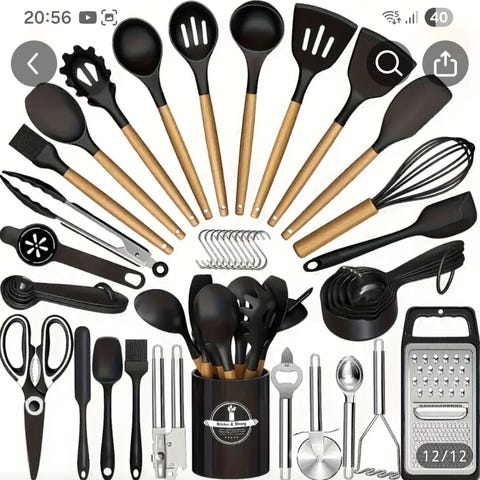 36 stk kjøkkenutstyrsett med silikonespatler og kroker for enkel oppbevaring