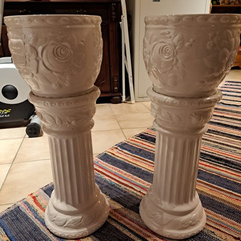 Pen og solid porselens pidestall i klassisk utførelse. Perfekt til blomsterpotte, statue eller dekor. Tidløst design som passer både moderne og tradisjonelt interiør. Hel og fin – ingen synlige skader eller sprekker.